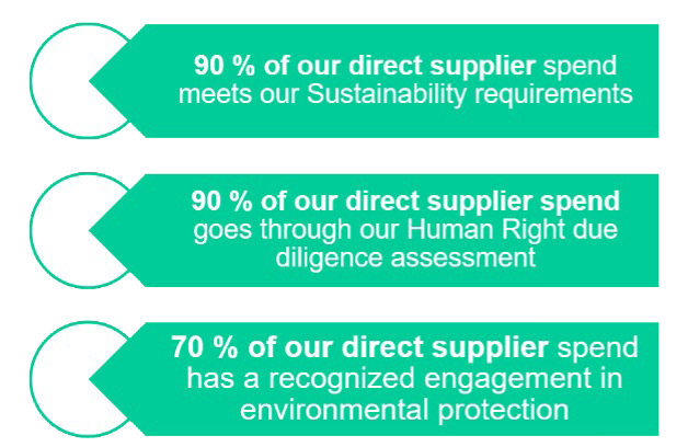 Sustainability is a key aspect of Solenis Supplier Risk program. We have strong ambitions and we defined targets that will ensure Solenis a resilient and sustainable value chain as reported below*: